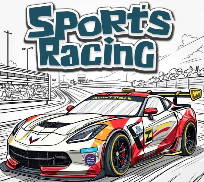 Sports and Racing Car Coloring Book: Fuel excitement with fast cars, thrilling sports scenes, and dynamic racing action.