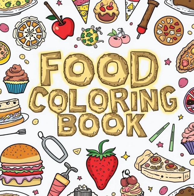 Food Coloring Book: Color delicious treats, meals, and fun food characters, from cupcakes to pizza slices.
